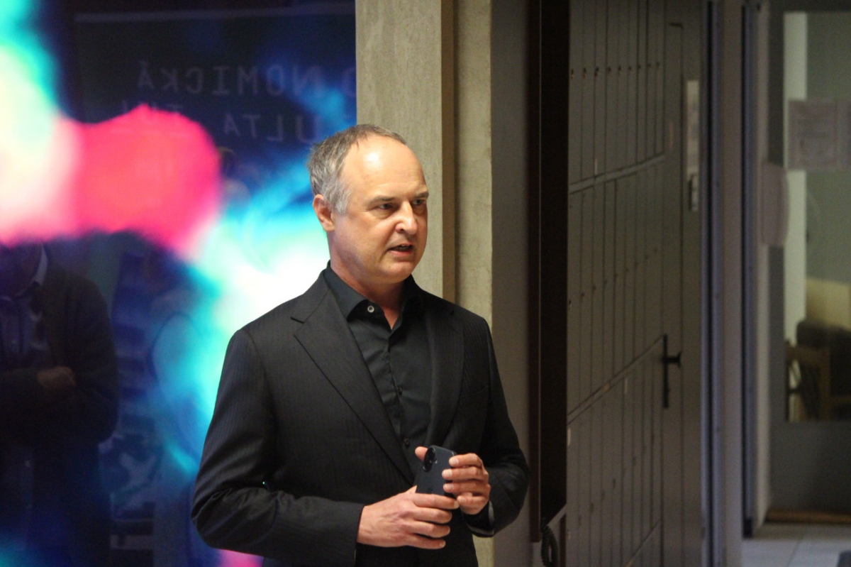 Marek Skála, děkan EF TUL: „Umělecké dílo Pavla Mrkuse shledávám více než symbolickým pro naši fakultu. V centru naší pozornosti, našeho bádání je ekonomické chování člověka, které se odehrává ve světě nejistot a permanentních změn.”