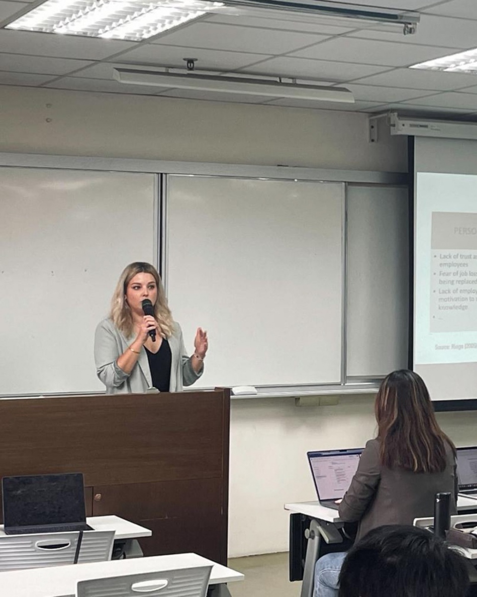 Významnou část pobytu tvořila účast na výuce předmětů Management a Cross-Cultural Communication and Management formou tzv. shadowingu, který umožnil detailní vhled do pedagogických metod v mezinárodním a kulturně diverzifikovaném prostředí. V závěru stáže vystoupila také s vlastními hostujícími přednáškami, jejichž struktura i obsah reflektovaly získané zkušenosti – zejména důraz na interaktivitu, práci s reálnými příklady a aktivní zapojení studentů. Součástí programu byla i inspirativní přednáška Felixe Honga, který sdílel své zkušenosti z praxe ve firmách jako Googleči ve startupovém prostředí.
