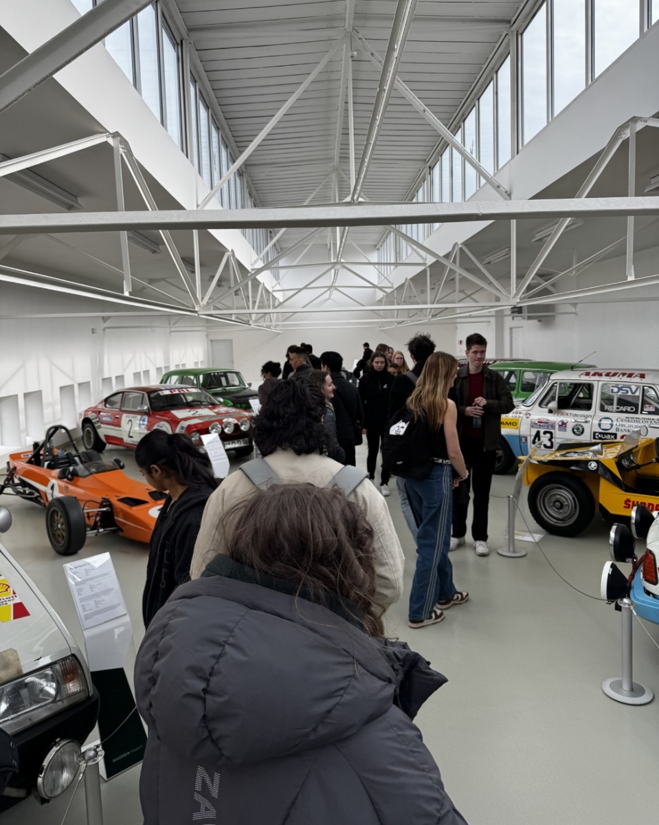 On April 13, 2026, a specialized excursion was organized for International Management students and international students from the Faculty of Economics to Škoda Auto. The aim of the excursion was to connect knowledge in the fields of logistics and quality management with real-world operations at one of the most significant companies in the Czech Republic. The program began with a visit to the Škoda Auto Museum, where the students learned about the brand’s history and the development of the automotive industry. This was followed by a specialized section focusing on logistics and supply chain management. Other topics of interest included green logistics, with a focus on emissions, and transport management. The excursion also included a tour of the M1 hall and the welding/pressing plant.