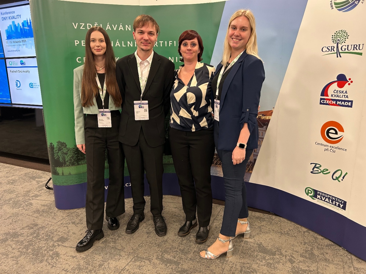 Jaký je význam obranného průmyslu pro stát? Jakou roli hraje Asociace obranného a bezpečnostního průmyslu v systému bezpečnosti? To vše a mnoho dalších zajímavostí jsme měli možnost načerpat z přednášek na Dnech Kvality 2025, které organizovala Česká společnost pro jakost a kterou jsme v úterý 11. listopadu 2025 navštívili s doktorkou Evou Šírovou a studentskými kolegy Markétou Antošovou a Ladislavem Búzi. Hlavní stream přednášek byl zaměřen na odborná témata z oblastí