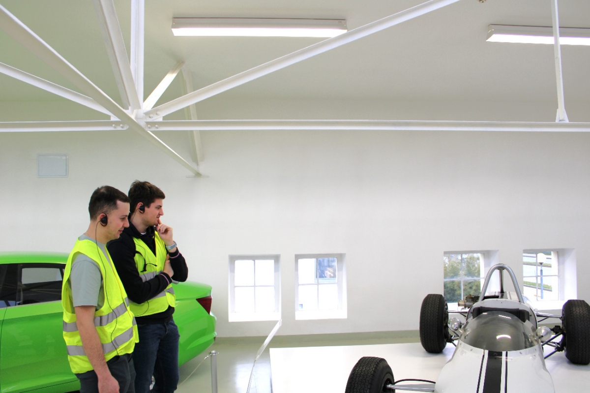 Druhá část dopoledního programu byla zaměřena na prohlídku závodu a hal. Během prohlídky prostor Lisovny se studenti dozvěděli, že je klíčová z důvodu výroby karosářských dílů, které určují pevnost a kvalitu vozu. Na montáži dále viděli komplexní výrobní proces, který zahrnuje montáž karoserie, instalaci motoru, podvozku, náprav a elektrických systémů. Zároveň se seznámili i s procesy a systémy vychystávání na linku a automatizovanými systémy, které dováží jednotlivé díly k lince.