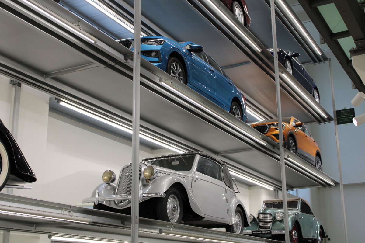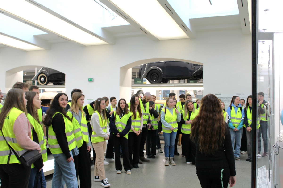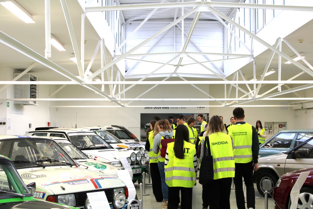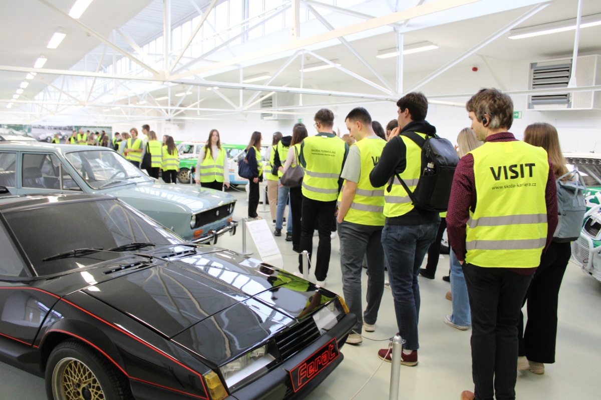 První zastávkou byl depozitář prototypů a sportovních vozů, kde má Škoda Auto k dispozici svoje odvážné nápady - od legendárního Ferratu až po soutěžní speciály, které brázdily světové rallye. Ve Škoda Muzeu měli studenti možnost si prohlédnout vystavenou expozici, kde jsou k vidění historické vozy, modely z různých období, ale i moderní vozy, díky čemuž je možné sledovat proměnu značky napříč více než 130letou historií.