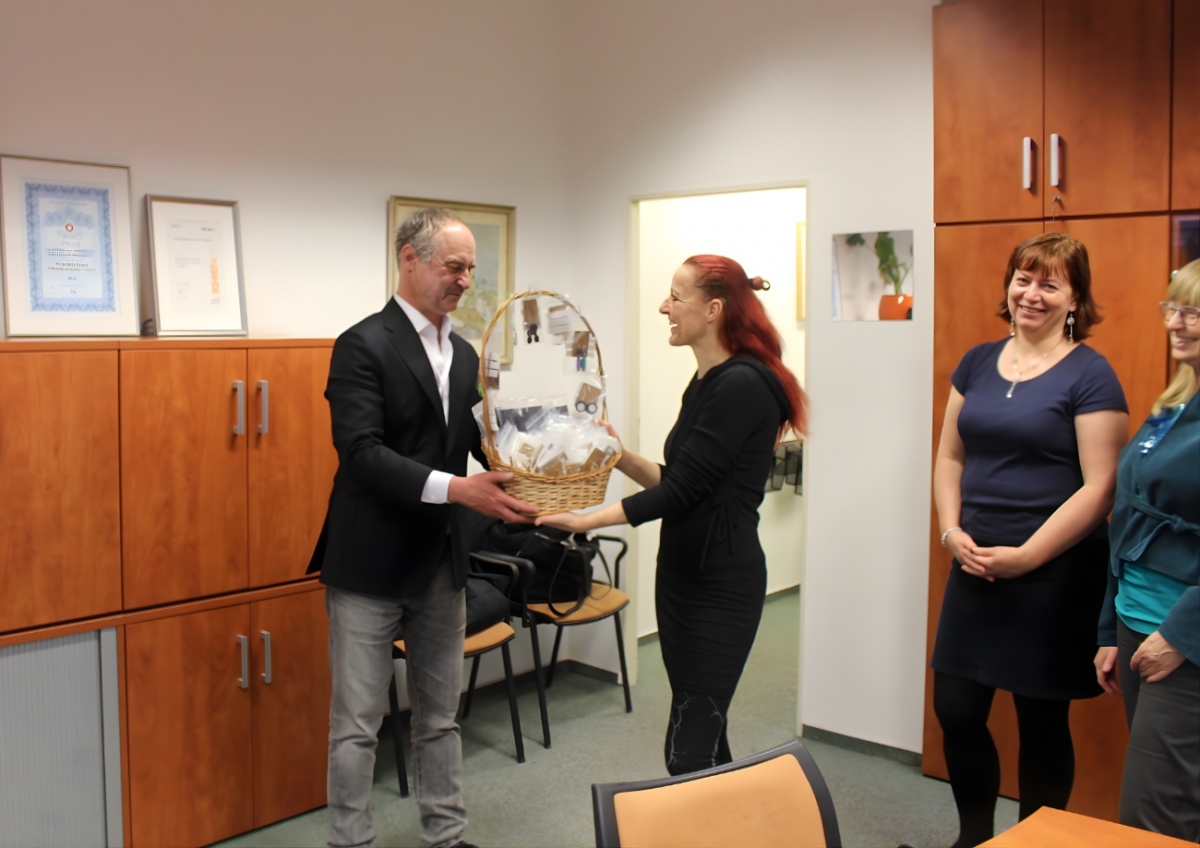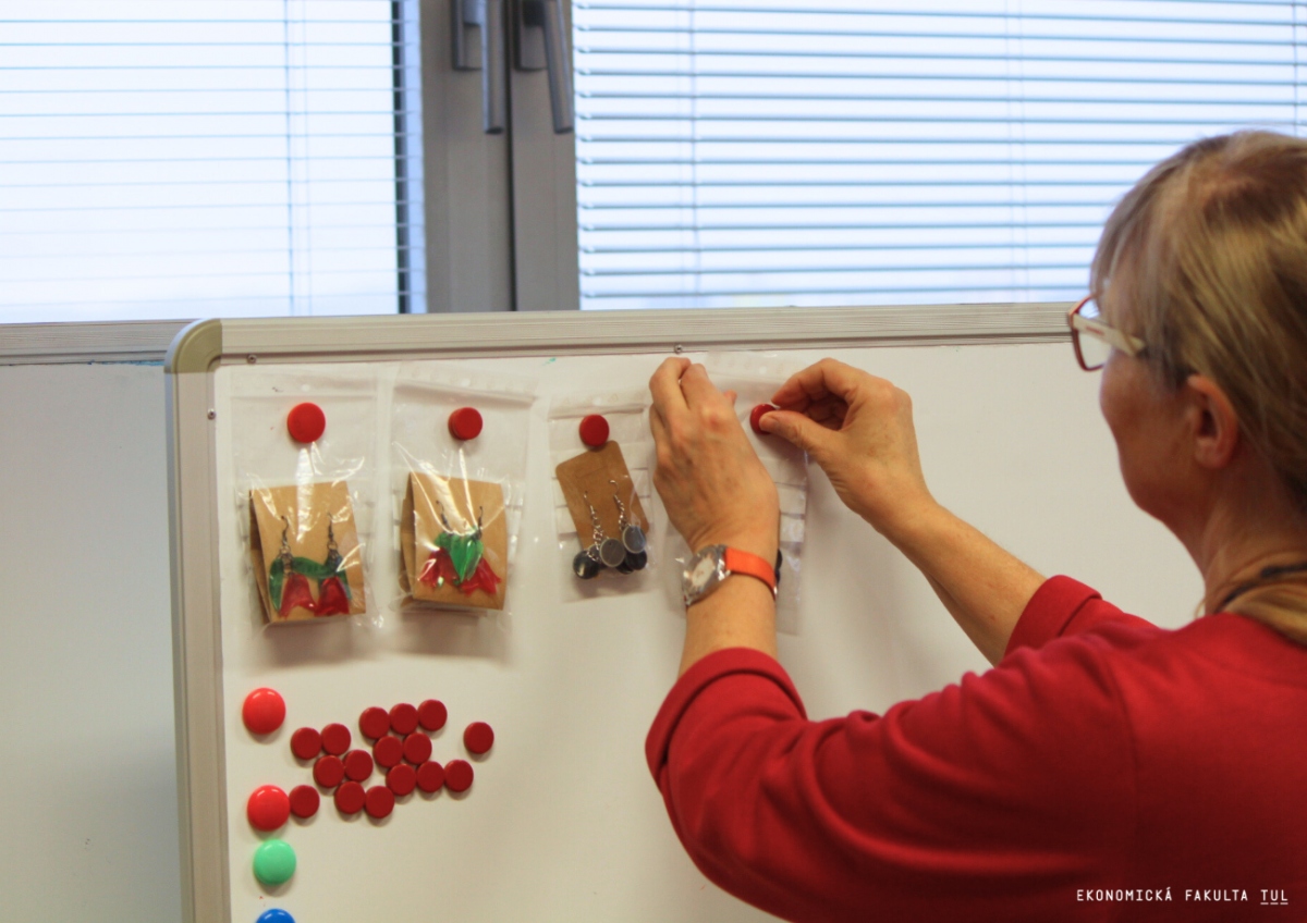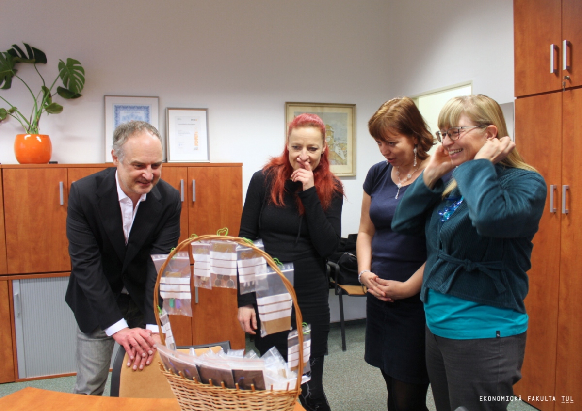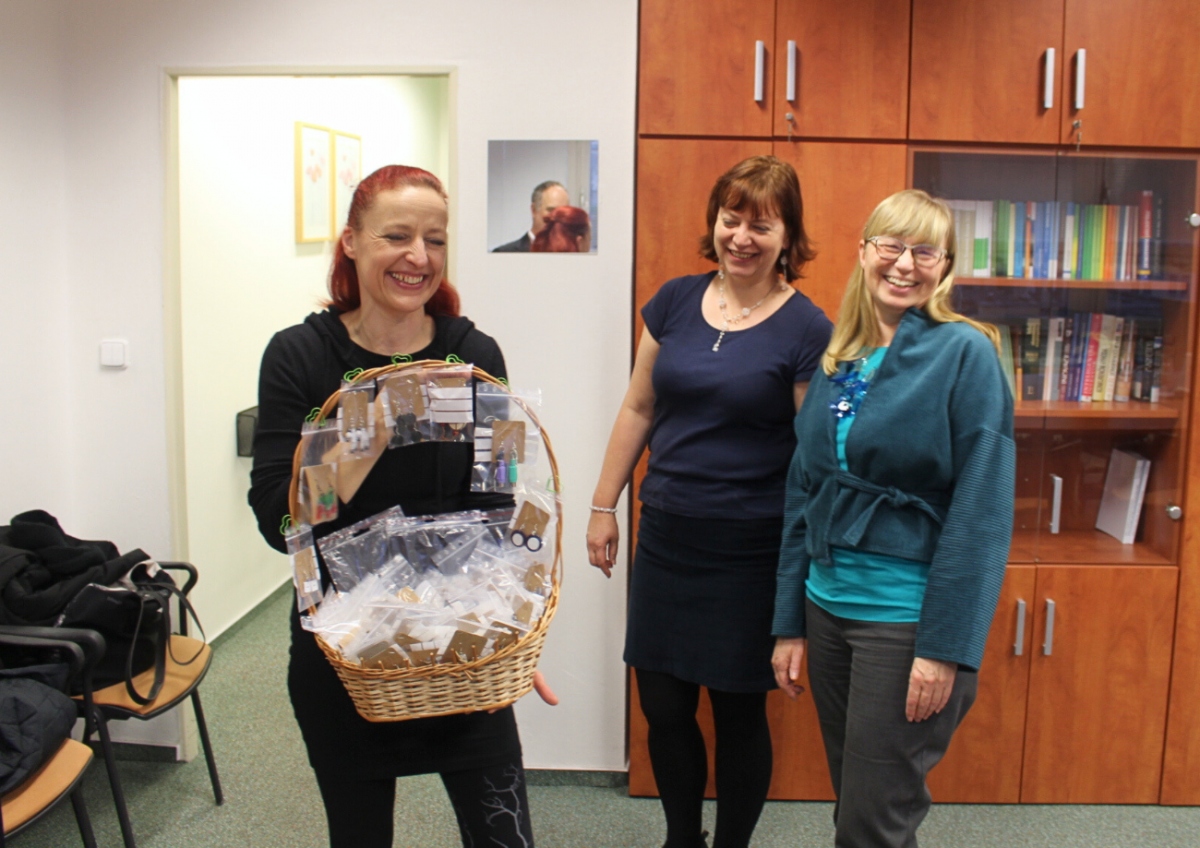 Na akci dorazily desítky dobrovolníků, kteří věnovali svou energii a volný čas na pomoc potřebným. Dohromady se vyrobilo téměř 100 ks šperků – všem, kteří dorazili, srdečně děkujeme! Výrobky v minulém týdnu předal za naší fakultu děkan Marek Skála a organizátorky akce Petra Rydvalová a Magdalena Zbránková, a sice zástupkyni sdružení TULIPAN, paní Šárce Feige.
