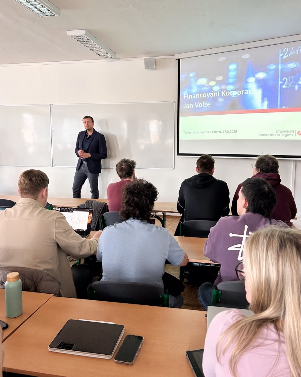Dne 17. března 2026 na fakultě proběhla odborná přednáška s názvem Bankovní financování korporací v praxi. Přednášku vedl Ing. Jan Volše z UniCredit Bank, který studentům přiblížil, jak v praxi funguje poskytování bankovních úvěrů firmám a jak banky o těchto úvěrech rozhodují.