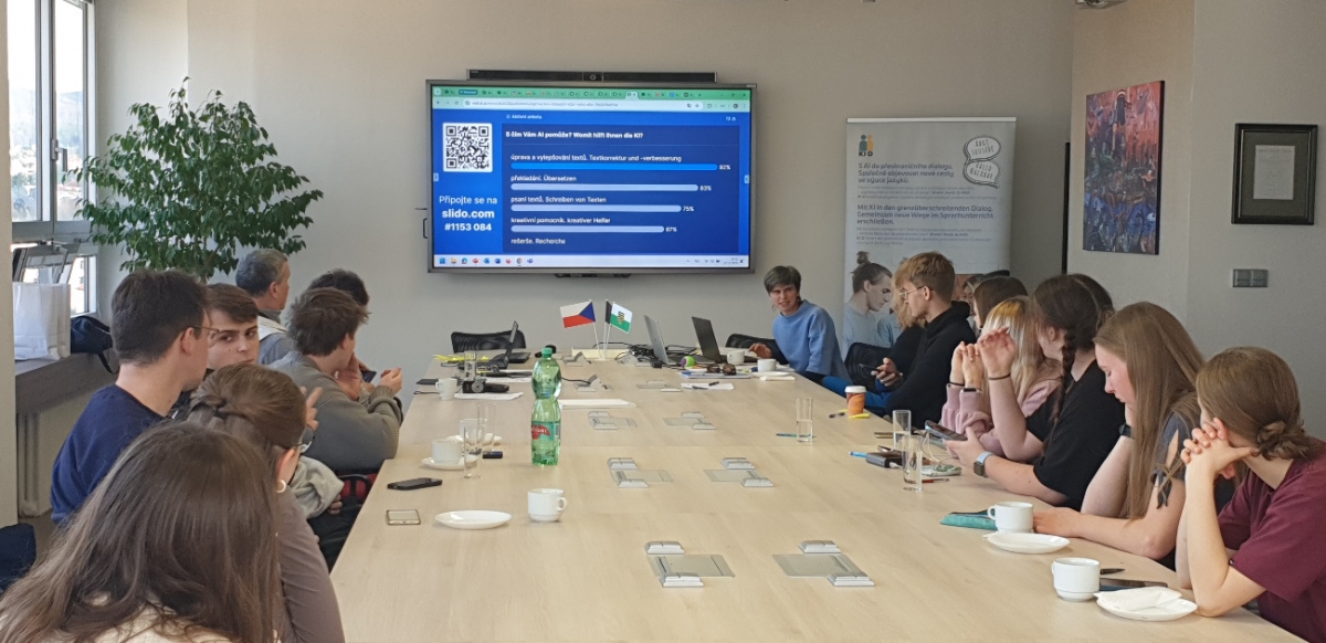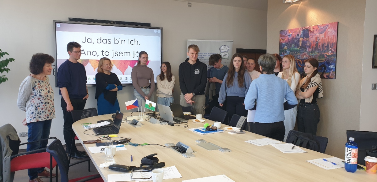 Ve středu 12. listopadu 2025 se sešli studenti naší fakulty se studenty z TU v Drážďanech, aby se seznámili a vytvořili jazykové tandemy. V příštích týdnech totiž budou ve smíšených skupinách pracovat online na společných jazykových projektech a využívat při tom AI. Toto seznamovací setkání se velmi vydařilo a studenti se u toho náramně bavili.