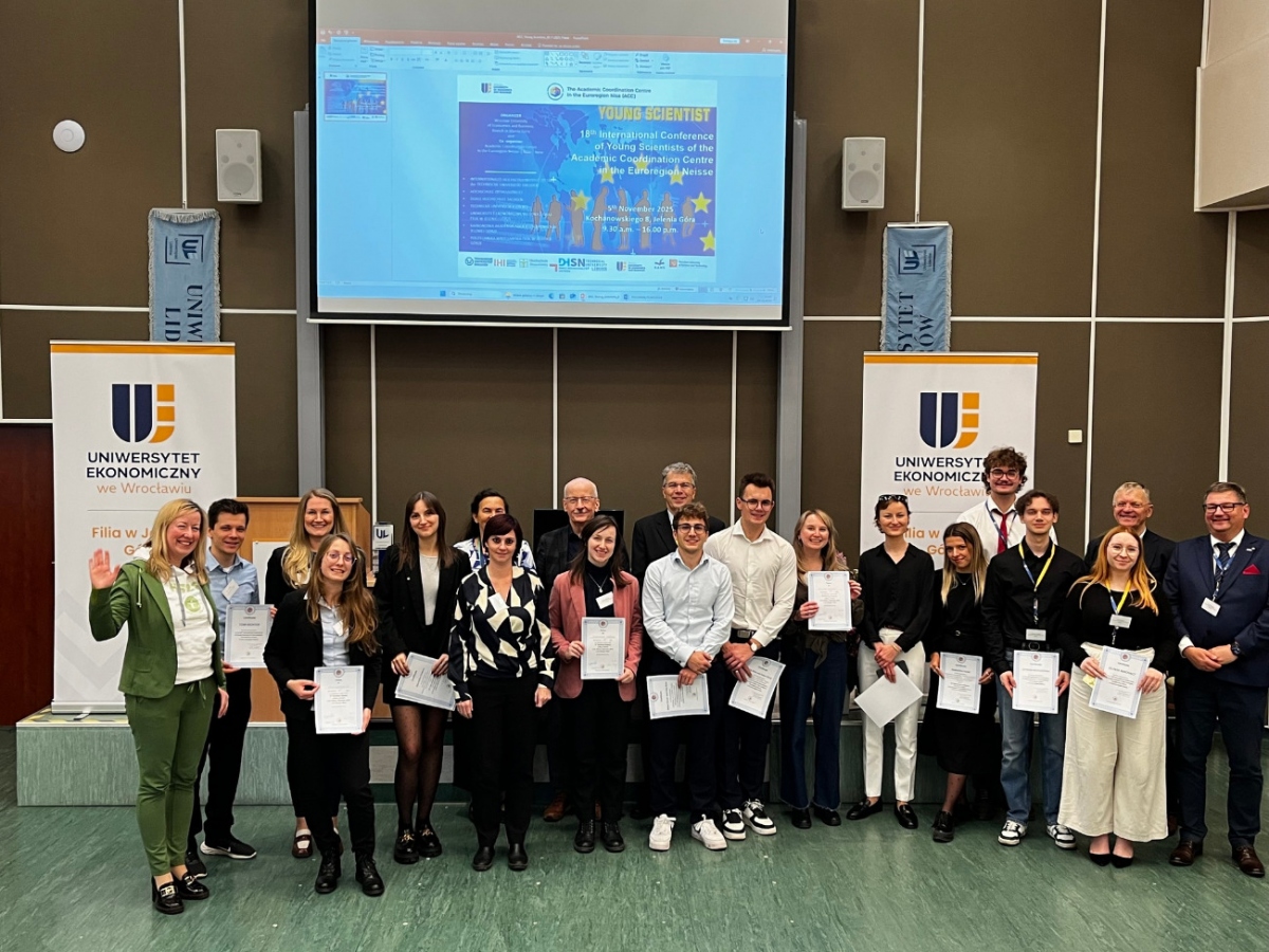 Dne 5. listopadu 2025 jsem se já a kolega Filip Řeha (za doprovodu doktorky Evy Šírové) účastnili soutěže v prezentování na 18. ročníku mezinárodní konference Young Scientists of the Academic Coordination Centre in the Euroregion Neisse v Jelení Hoře. Konference se účastnilo přibližně 30 studentů s 12 projekty. V hodnotící komisi seděli následující odborníci: